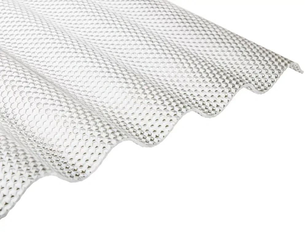 Prosvětlovací vlnité desky vyrobené z akrylového skla, se speciální pyramidovou strukturou spodní strany. Velmi vysoká životnost.