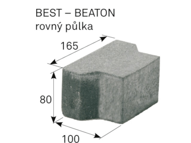 BEST – BEATON ROVNÝ je ideální druh zámkové dlažby pro plochy s požadavkem na hladký a rovný povrch. Nejčastěji se využívá pro zadláždění parkovišť před marktety, průmyslových ploch, chodníků či in-line dráhy. Tvar připomínající íčko má výhodu při pokládce – stále drží směr pokládky. Doplňující prvky BEST - BEATON KRAJ a BEST - BEATON PŮLKA s rovnou hranou oceníte pro čisté zakončení dlážděné plochy bez řezání.