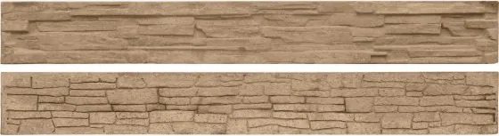 Deska na výškovou regulaci betonového plotu. Ukládá se zpravidla jako poslední, případně předposlední na klasické rovné desky. Z jedné strany je reliéfní vzor štípaného kamene, z druhé strany je plochý vzor skládaného kamene. 200x25 cm.