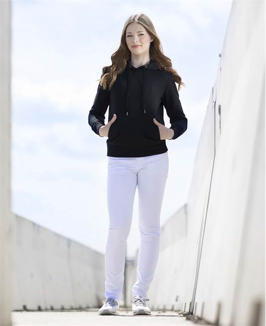 - 2 přední průhmatové kapsy s designovým prošitím, zadní kapsy moderního riflového střihu doplněné výšivkou, zpevňující ozdobné rivetky