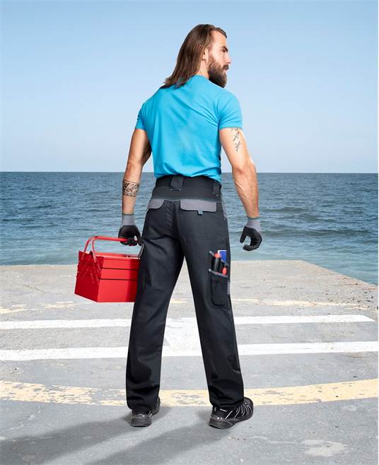 - klasické montérkové kalhoty do pasu sportovního střihu