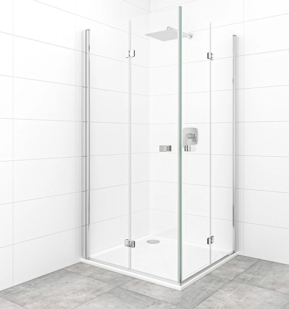 Sprchový kout s vaničkou a barvou profilů v lesklém chromu, výplň je z čirého skla bez dekoru. Produkt je opatřen povrchovou úpravou Easy Clean, která usnadňuje čistění a minimalizuje usazování vodního kamene. Zalamovací systém otevírání. Levá i pravá orientace.