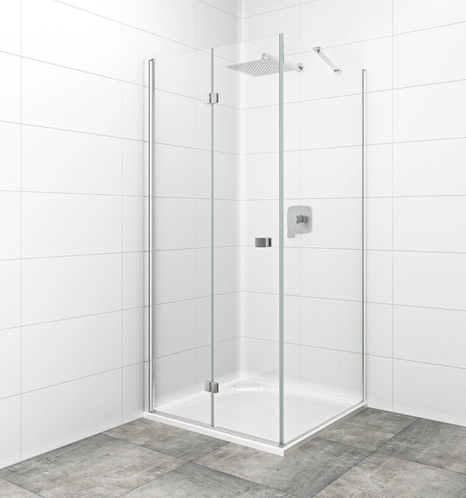 Čtvercový sprchový kout tvoří kombinace sprchových dveří 100cm a boční zástěny 100cm.