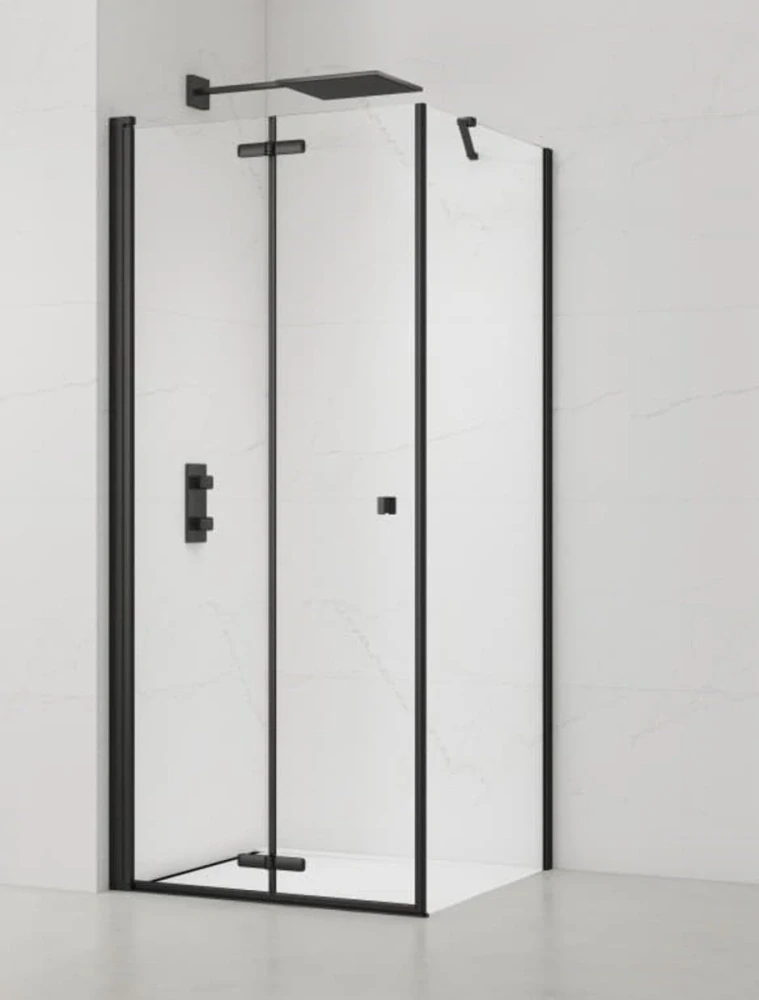 Sprchový kout bez vaničky a barvou profilů v černé barvě, výplň je z čirého skla bez dekoru. Produkt je opatřen povrchovou úpravou Easy Clean, která usnadňuje čistění a minimalizuje usazování vodního kamene. Zalamovací systém otevírání. Určení - levá i pravá orientace.